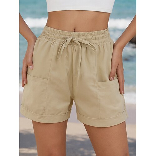Damen Kunstbaumwollleinen Shorts Sommershorts Urlaub Mode Streetwear Kurz Hohe Taille Einfach Kordelzug Tasche Elastischer Bund Atmungsaktivität Bequem Unelastisch Täglich Urlaub Straße Blau
