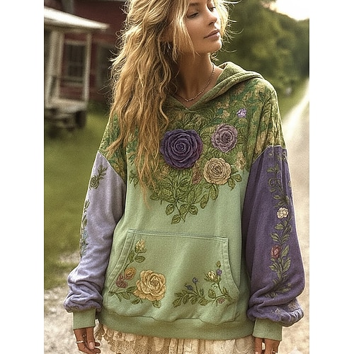 Felpa con cappuccio vintage boho 3D stampata per donna felpa patchwork felpa con cappuccio floreale chiusura lampo moda casual maniche lunghe cappuccio abbigliamento quotidiano da strada uscita tasca
