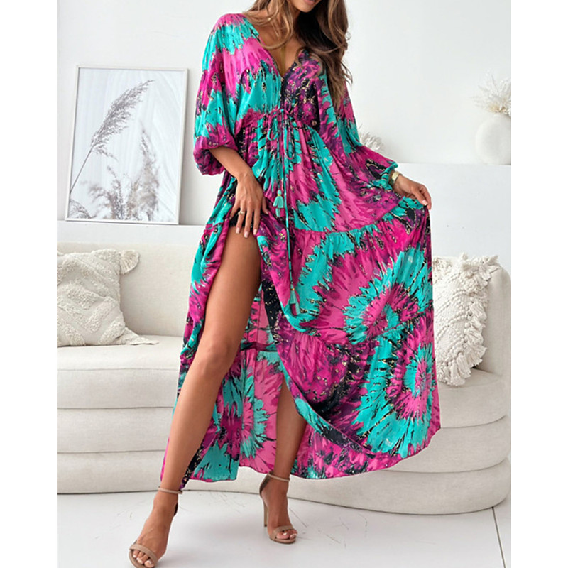 Women's Long Dress Maxi Dress Casual Dress Summer Dress Print Dress Fashion Outdoor Holiday Date Regular Fit Floral Long Sleeve Deep V Blue Purple Green Summer Spring