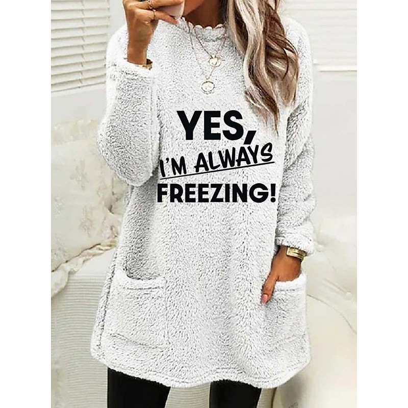Women's Pullover Sweatshirt Letter Casual Long Sleeve Crew Neck Long Tops Street Dailywear Pocket Print Blue Black White Pink Army Green Fall Winter