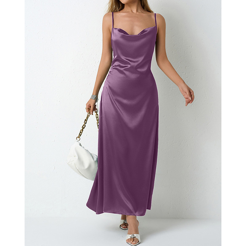 Women's Midi Dress Satin Dress Party Dress Cocktail Dress Slip Dress Fashion Modern Outdoor Evening Party Party Regular Fit Plain Sleeveless Straps Light Green Wine Dark Green Purple Spring Fall