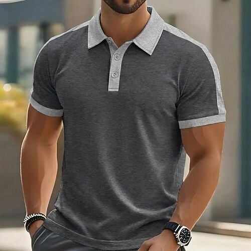 Per uomo Polo Maglia da golf Casuale Sportivo Classico Manica Corta Moda Cool Blocco di colori Bottoni Estate Primavera Primavera Autunno Vestibilità regolare Nero Bianco Borgogna Cachi Grigio