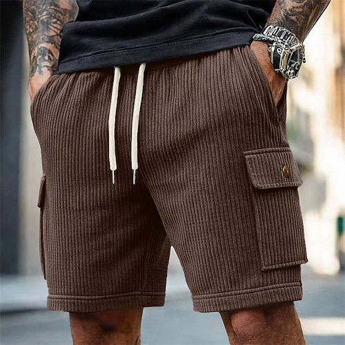 Per uomo Shorts Pantaloncini casual Pantaloncini di velluto a coste Coulisse Tasca Testurizzato Semplice Comodità Traspirante Lunghezza al ginocchio Casuale All'aperto Spiaggia Vacanza Moda Nero