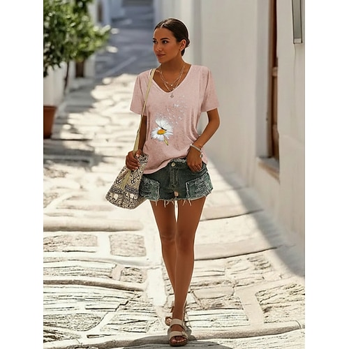 Per donna Maglietta Stampato Farfalla Dente di leone Essenziale Manica Corta Scollo a V Top Regolari Weekend Blu Nero Rosa Viola Verde Estate