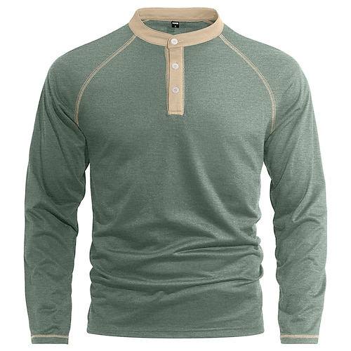 Per uomo Maglietta Maglia Henley Manica Lunga Girocollo Estate Primavera Tinta unica Streetwear Elegante Casual Patchwork Blocco di colore Bottoni Casuale Quotidiano All'aperto Cammello Nero Blu
