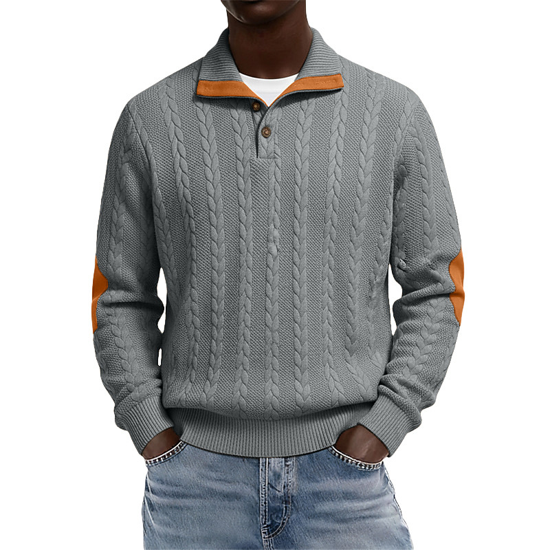 Men's Jacquard Sweatshirt Pullover Hoodie Sweatshirt Button Up Hoodie Black Navy Blue Orange Khaki Light Grey Standing Collar Plain Patchwork Textured Casual Daily Sports Outdoor Streetwear Cool