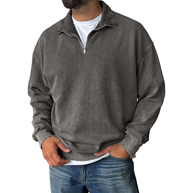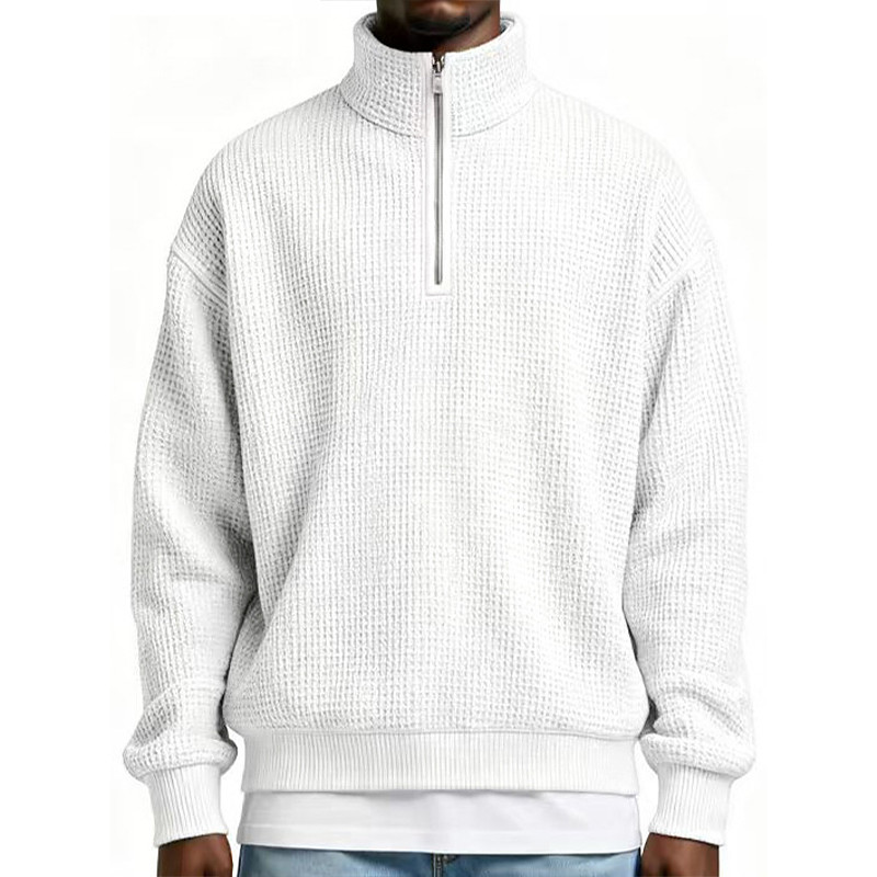 Men's Sweatshirt Waffle Sweatshirt Pullover Quarter Zip Sweatshirt Apricot Wine Red Black White Light Green Standing Collar Plain Textured Casual Daily Sports Outdoor Streetwear Cool Sportswear