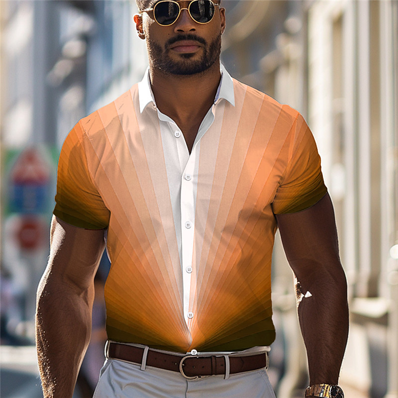 Men's Dress Shirt Printed Shirts Geometric Pattern Outdoor Street Blue Orange Gray Short Sleeve Turndown Summer Clothing Apparel Print