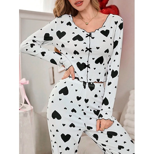 Per donna Set Pigiama Casual Comfort Cuore Elastico in vita Pantalone Quotidiano Casa Manica Lunga Collo quadrato Blu Nero Rosa Rosso Viola Estate Primavera Vestibilità regolare