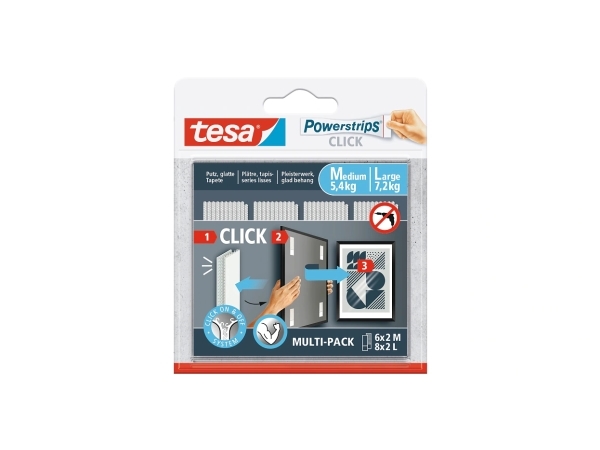 TESA Powerstrips CLICK M + L, Monteringspude, Hvid, Indendørs, 7,2 kg