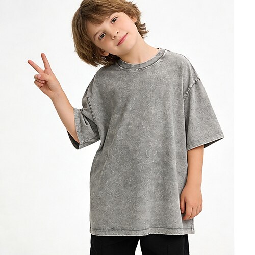 Bambini Ragazzi Maglietta Tee Tinta unica Manica Corta Top bambini All'aperto Moda Cool Estate Nero Dai 4 anni in su