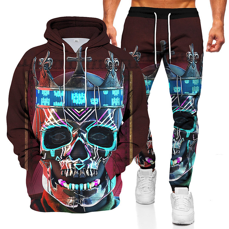 Men's Tracksuit Hoodies Set Wine Red Royal Blue Blue Brown Coffee Hooded Graphic Skull 2 Piece Print Sports Outdoor Casual Sports 3D Print Polyester Streetwear Sportswear Basic Spring Fall Clothing