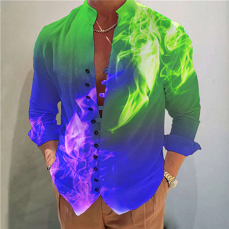 Men's Gradient Shirt Button Up Shirt Long Sleeve Fashion Designer Casual Outdoor Vacation Daily Fall Autumn / Fall Spring Summer Stand Collar Print Blue Purple Green Gray