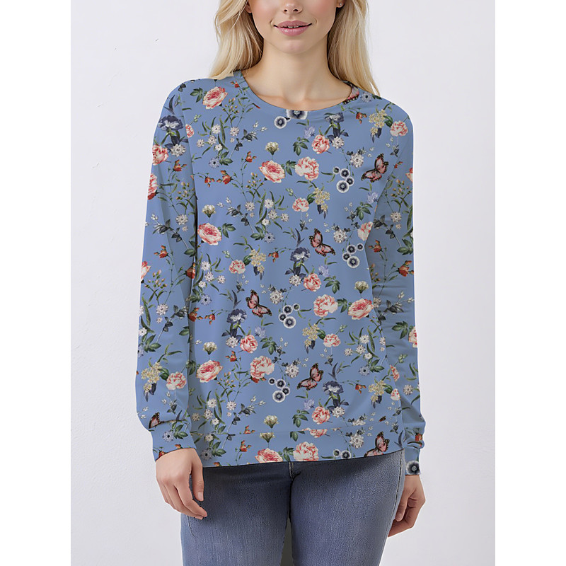 Women's Pullover Sweatshirt Hoodies Floral Graphic Classic Casual Print Long Sleeve Crew Neck Round Neck Regular Tops Casual Holiday Print Blue Fall Winter