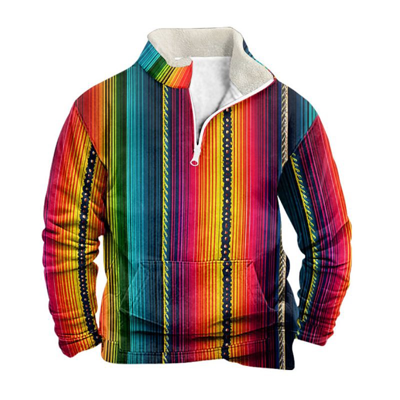Men's Stripes Printing Quarter Zip Sweatshirt Sweatshirts Long Sleeve Sweatshirt Half Zip Vintage Retro Print Holiday Going out Festival Print Fall Winter