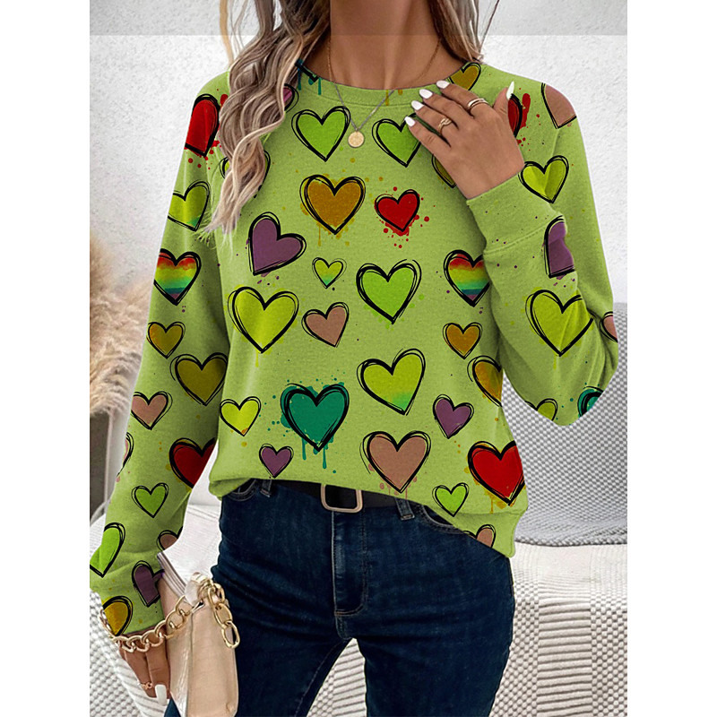 Women's Pullover Sweatshirt Heart Casual Long Sleeve Round Neck Regular Tops Casual Street Dailywear Print Green Spring Fall Winter