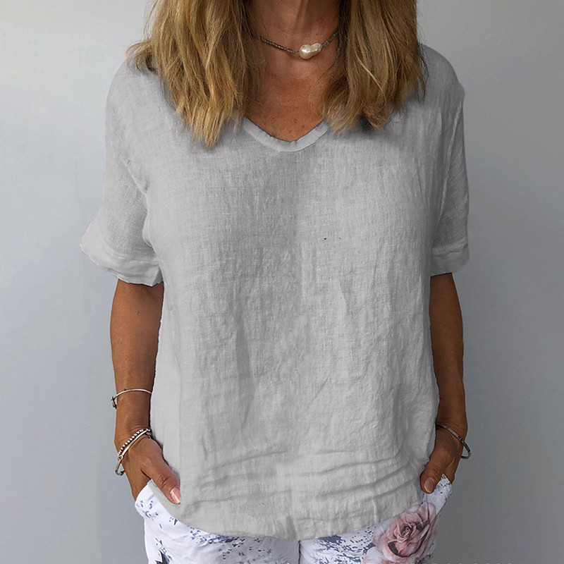 Women's Shirt 100% Cotton Plain Daily Stylish Basic Short Sleeve V Neck Regular Tops Daily Work Holiday Blue White Gray Summer