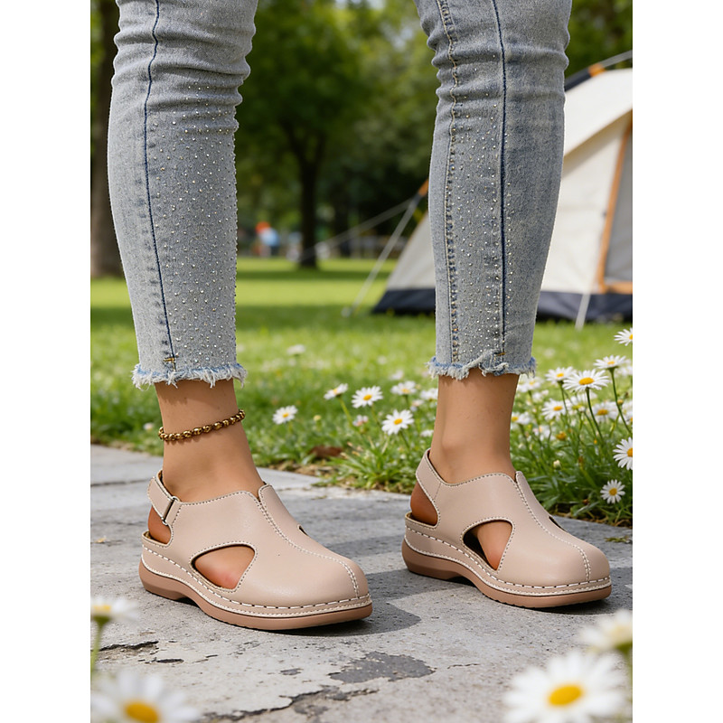 Women's Red Cut-Out Comfort Sandals, Soft Cushioned Sole and Breathable for Daily Walking, Travel, Work and Casual Wear