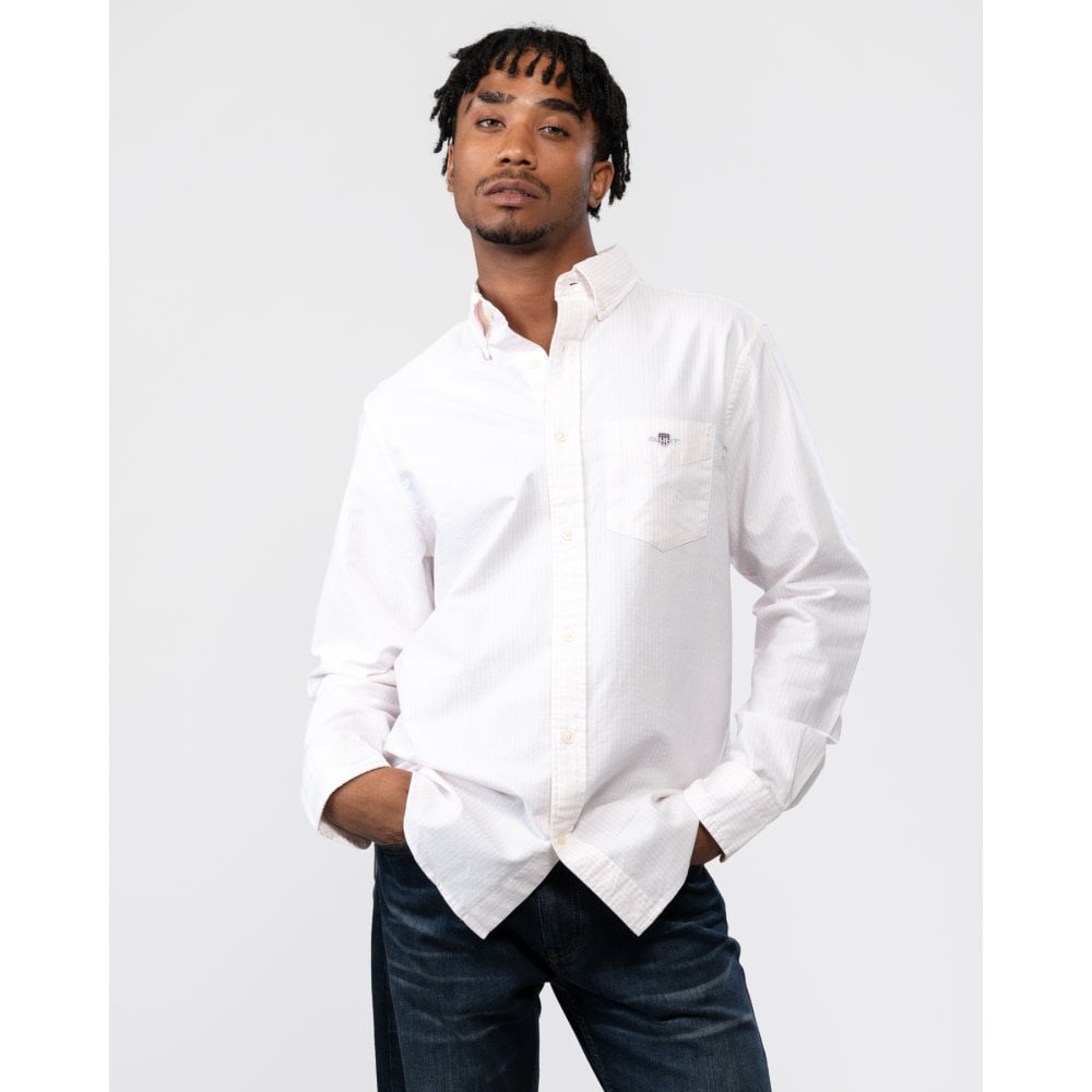 Gant Mens Regular Fit Long Sleeve Oxford Banker Stripe Shirt - Pink Cotton - Size X-large | Gant Sale | Discount Designer Brands