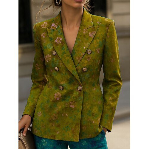 Per donna Blazer Antivento Caldo Bottoni Formale Floreale Casuale Ferie Uscire Casual Quotidiano Regolare Bavero classico Vestibilità regolare Manica Lunga Capispalla Verde chiaro Rosso Blu Primavera