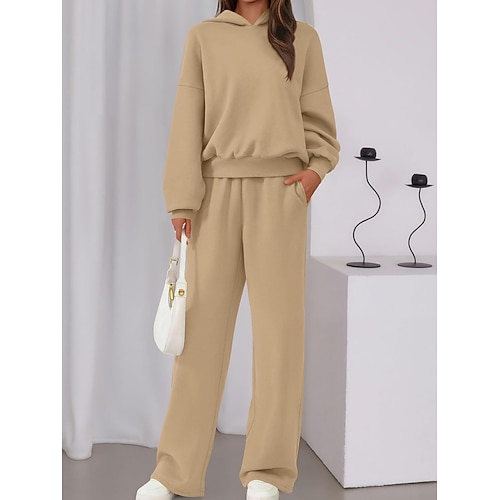 Per donna Set da due pezzi Felpa con Cappuccio Tuta Manica Lunga Con Cappuccio Semplice Sport Moda Streetwear Casuale Quotidiano All'aperto Nero Vino Blu marino Primavera Vestibilità comoda