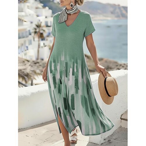 Per donna Abito Midi Vestito Casual Abito a trapezio Abito Stampato Moda Moderno All'aperto Vacanza Weekend Vestibilità comoda Ombre Geometrico Manica Corta Scollo a V Blu Rosa polveroso Rosa Viola