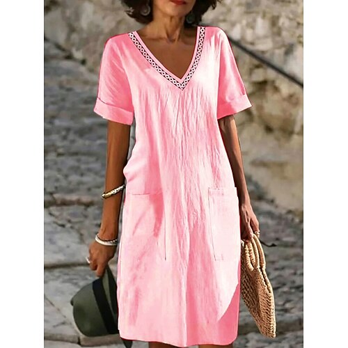 Per donna Abito Midi Abito a Tubino Abito Camicia Abito Bianco Abiti in cotone e lino Vacanza Essenziale Moderno Quotidiano Weekend Vestibilità comoda Semplice Manica Corta Scollo a V Blu Verde