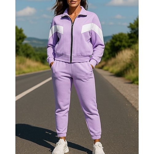 Per donna Felpa con zip Tute da ginnastica da salotto Tuta da 2 pezzi con tasca Blocco di colori Completo Abbigliamento Autunno Nero Bianco Spandex Escursionismo Lavoro All'aperto Manica Lunga Sport