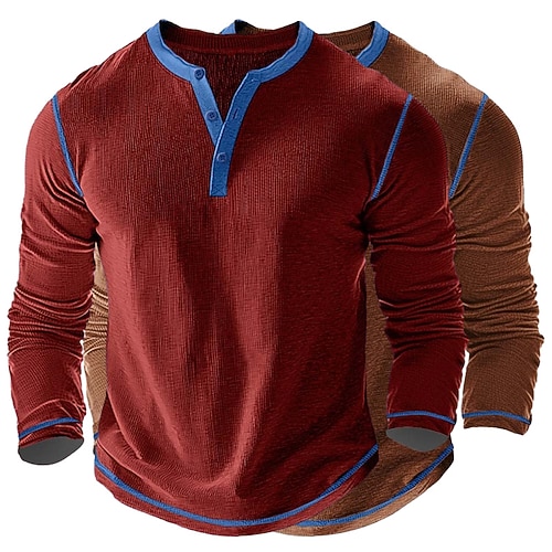 Per uomo Maglietta Maglia Henley Maglietta a Maglia Waffle Camicia a Maniche Lunghe Manica Lunga Blocco di colori Tinta unita Moda Designer Essenziale 2 Pezzi Confezione multipla Henley Vacanza