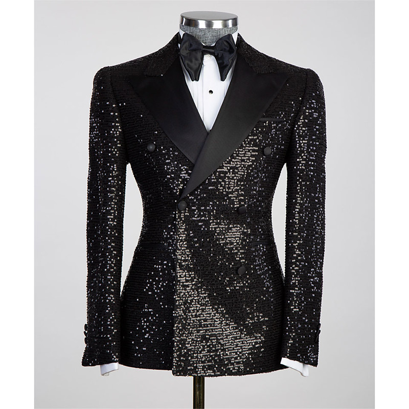 Men's Blazer Jacket Tuxedo Closure collar Party Sparkle Sequin Solid Colored Black Silver Champagne Tailored Fit Double Breasted Six-buttons