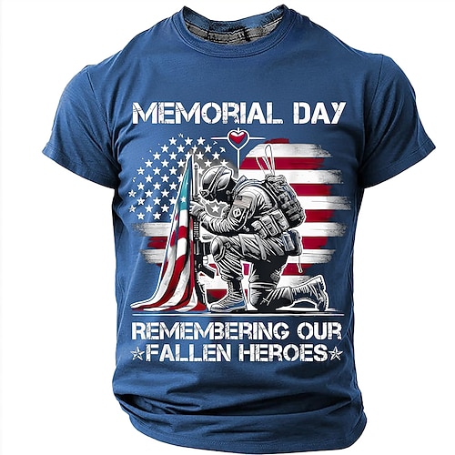 Giorno della memoria in ricordo dei nostri eroi caduti, maglietta da uomo con bandiera americana, cuore, soldato inginocchiato, grafica patriottica militare, maglietta vintage effetto invecchiato a