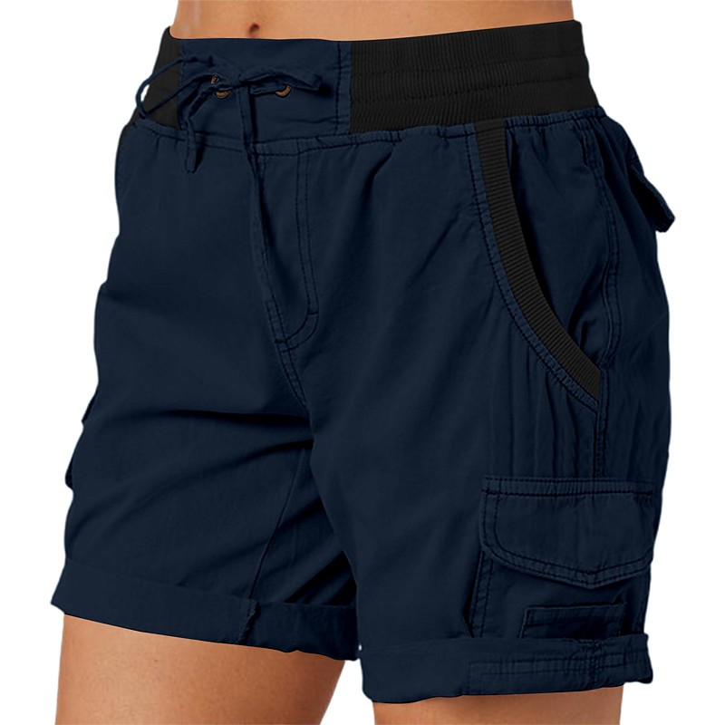 Women's Cargo Shorts Chinos Vacation Fashion Streetwear Short High Waist Plain Pocket Elastic Waistband Comfy Comfort Soft Micro-elastic Outdoor Street Navy-blue Apricot Black White Summer Spring Fall