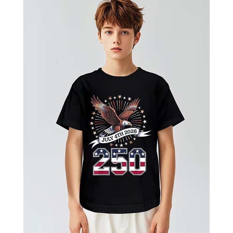 100% Cotton Kids Boys' Black White Eagle USA Flag 250th Anniversary T shirt Blouse Crew Neck Short Sleeve Outdoor Dailywear Fashion Streetwear Designer Printing Summer