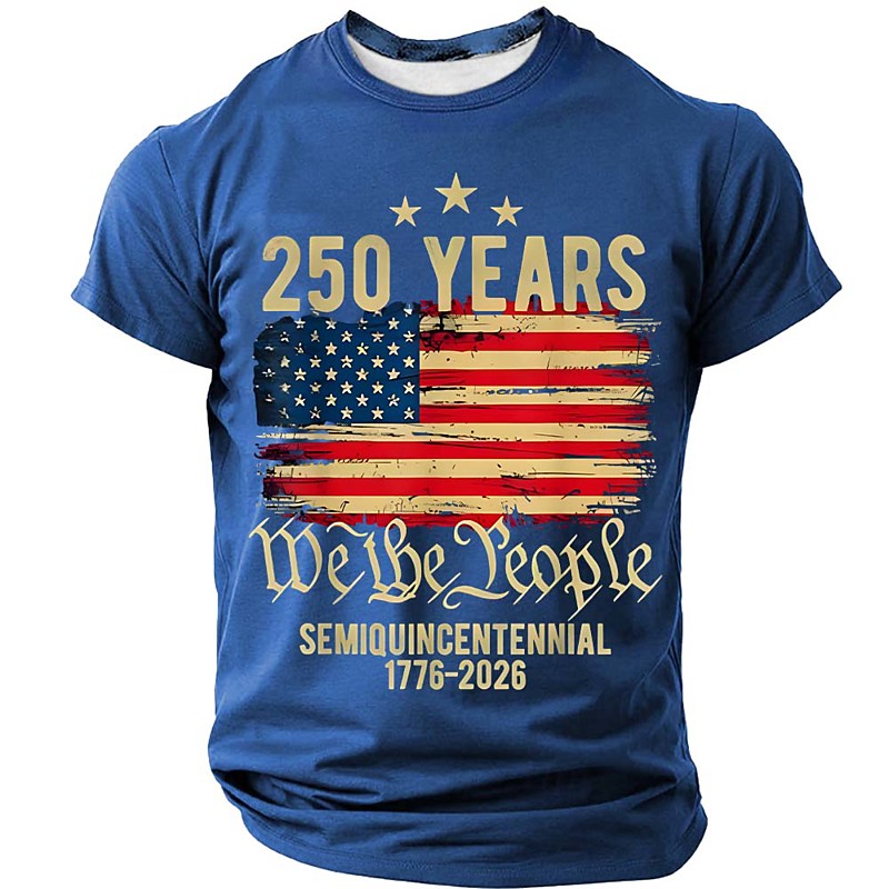 America's 250th Anniversary Men's American US Flag T Shirt Short Sleeve T shirt 3D Print Crew Neck Shirt Daily Military Daily Street Blue Black Red Summer Spring Clothing Apparel S M L XL XXL XXXL