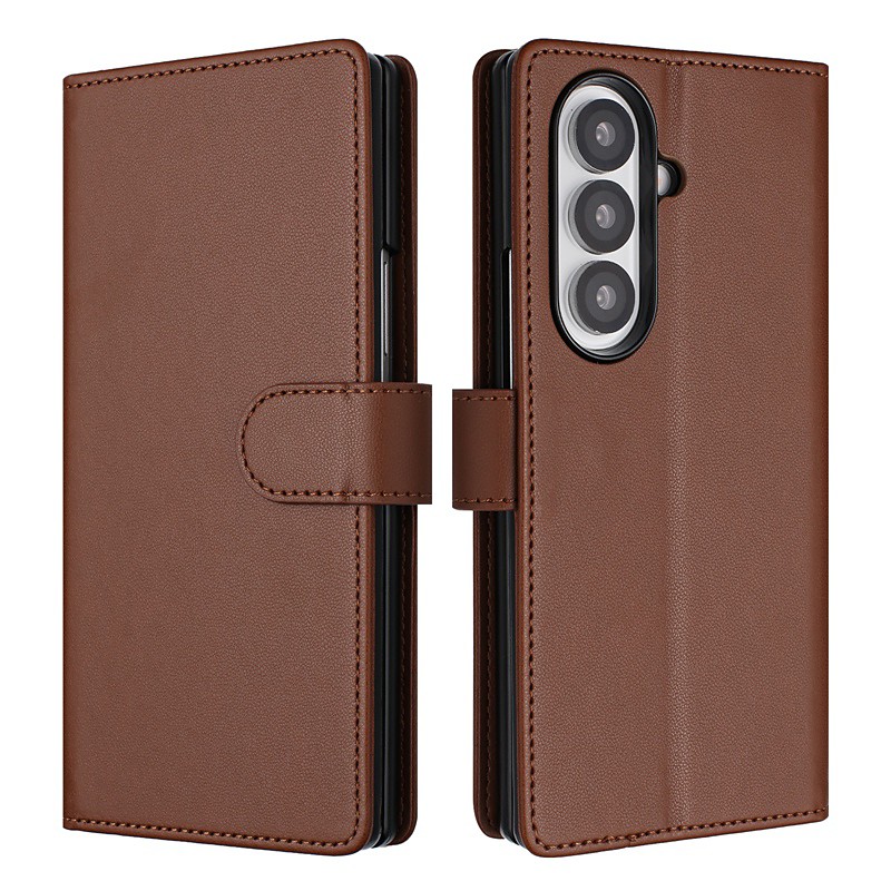 Phone Case For Samsung Galaxy Z Fold 6 Wallet Case with Stand Holder Zipper Full Body Protective Retro Genuine Leather