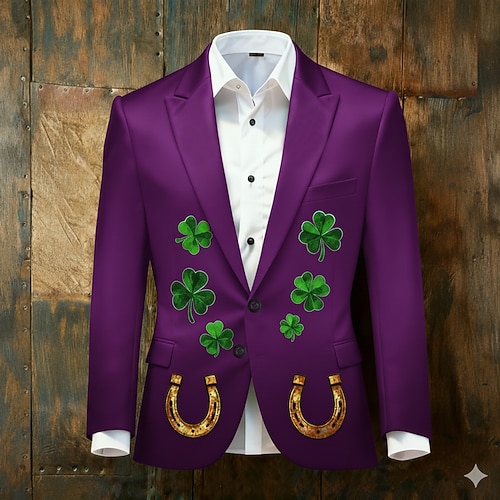 St. Patrick Herren Kleeblatt Blazerjacke Mantel Mode Bequem Atmungsaktiv Künstlerisch Lässig Täglich Party-Abendmode Festival 3D-Druck Knöpfe Mehrere Taschen Frühling Herbst Winter Fallendes Revers