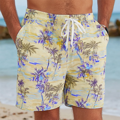 Per uomo Albero di Cocco Piante Tropicali Costumi da bagno Pantaloncini da mare Pantaloncini da Surf Misura del girovita medio Streetwear Hawaiano Vacanza al Mare Tasche Laterali fodera in rete