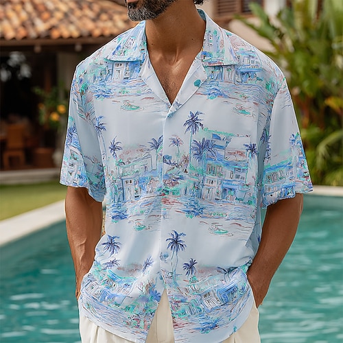 Per uomo Albero di cocco Piante tropicali Camicia hawaiana Camicia con bottoni Manica corta Hawaiano Ricorrere Da mare Per eventi Abbigliamento mare Estate Primavera Collo ripiegabile camicie con