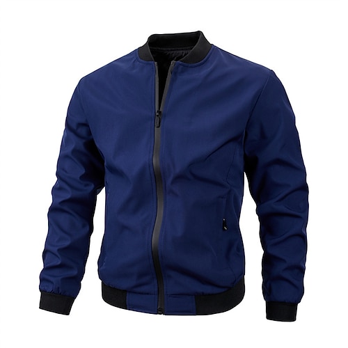 Per uomo Giubbotto bomber Giacca di transizione Uscire Giacca a Vento Tasca Primavera Autunno Semplice Classico Collo alla coreana Regolare Nero Blu scuro Grigio Giacca