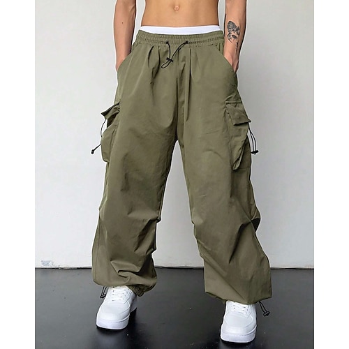 Per uomo Pantaloni cargo Pantaloni A cordoncino Vita elastica Multi tasca Liscio Indossabile Esterno Giornaliero Campeggio e hiking Di tendenza Classico Nero Verde chiaro