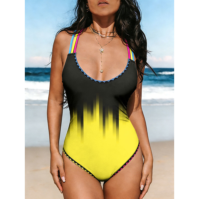 Women's Swimwear One Piece Monokini Briefs Swimsuit Tummy Control High Waist Slim Backless Vacation Vintage Ombre Graphic Scoop Neck Sleeveless Bathing Suits