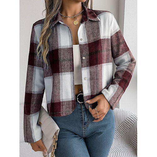 Per donna Giacca Casual Confortevole Traspirante Stampato Casual Plaid Vacanza Streetwear Casuale Abbigliamento quotidiano Monopetto Corto Collo ripiegato Vestibilità regolare Manica Lunga Capispalla