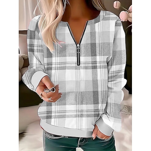 Per donna Felpa Pullover Felpe con cerniera Grafico Geometrico Plaid Moda Casual Manica Lunga Girocollo Top Regolari Streetwear Abbigliamento Quotidiano Cerniera Stampato Rosa Blu Viola Verde Grigio
