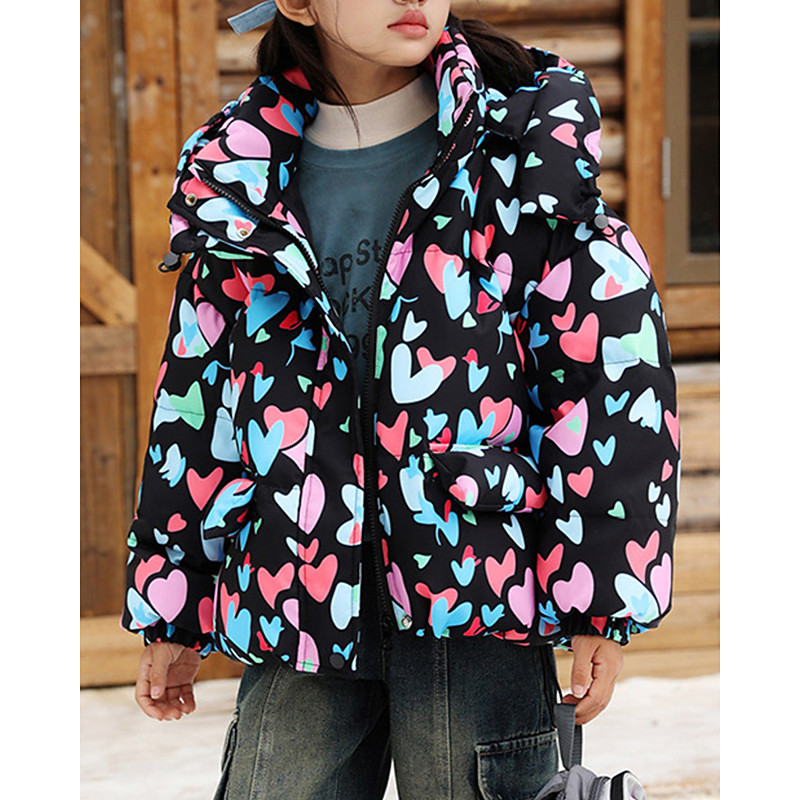 Kids Girls' Down Jacket Puffer Jacket Heart Sports Pocket Keep Warm Windproof Outdoor Coat Outerwear 4-12 Years Winter Black Pink