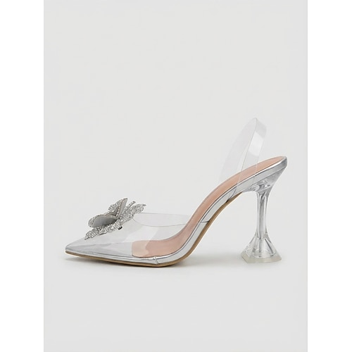 Sandali da donna trasparenti con tacco alto, scarpe eleganti trasparenti con punta aperta e cinturino in strass per cocktail party ed eventi serali serata fuori