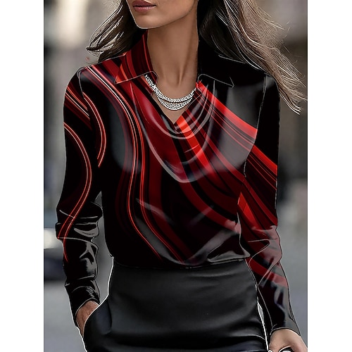 Per donna Camicia Grafico Geometrico Astratto Elegante Casual Manica Lunga Scollo a Cascata Top Regolari Lavoro Abbigliamento da sera Quotidiano Arricciato Drappeggiato Blu Rosso Blu Reale Viola Verde