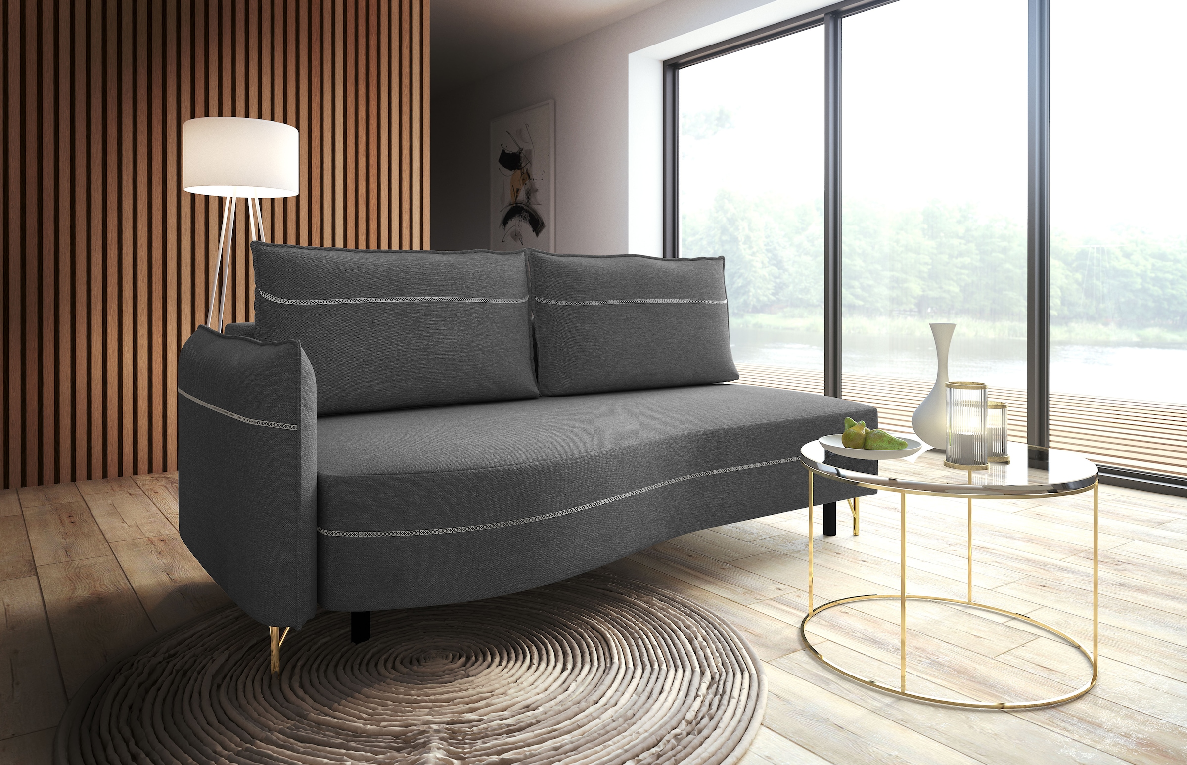Loungesofa EXXPO - SOFA FASHION "Ortis mit toller Kontrastnaht, Solitärmöbel, bequem, schmale Armlehne", silber (silberfarben), B:212cm H:93cm T:114cm, Sofas, Lounge-Sofa, Schlafsofa mit Bettfunktion und Bettkasten, komfortabler Federkern