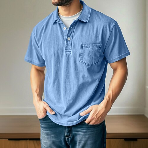 Per uomo Polo Sportivi Camicia 100% cotone lavaggio acido Casuale Ferie Bavero Manica Corta Vintage Essenziale Tinta unica Semplice Vintage ▾ angosciato Estate Primavera Primavera Estate