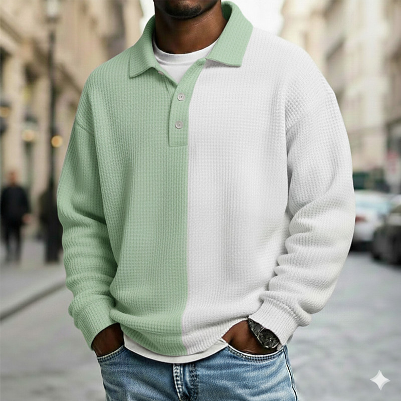 Men's Color Block Waffle Polo Shirts Long Sleeve Polo Shirts Lapel Sportswear Casual School Athleisure Daily Wear 3D Print Spring Fall Winter Blue Navy Blue Purple