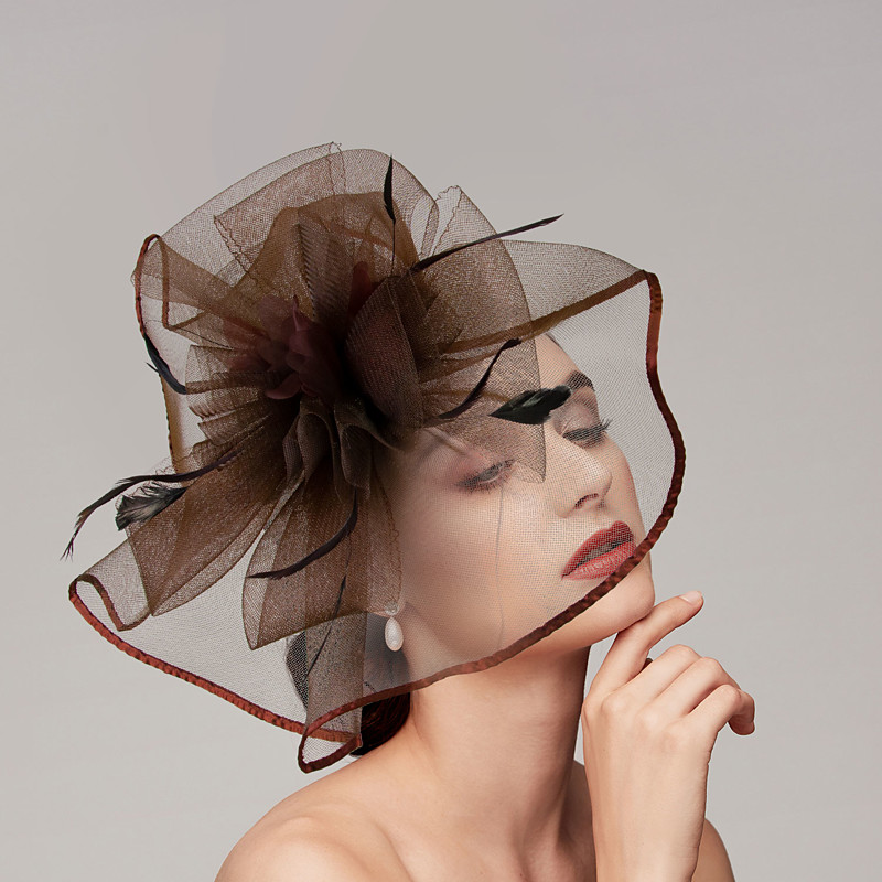Hats Organza Sun Hat Wedding Holiday Tea Party Horse Race Cocktail Elegant Vintage Sun Protection With Floral Headpiece Headwear